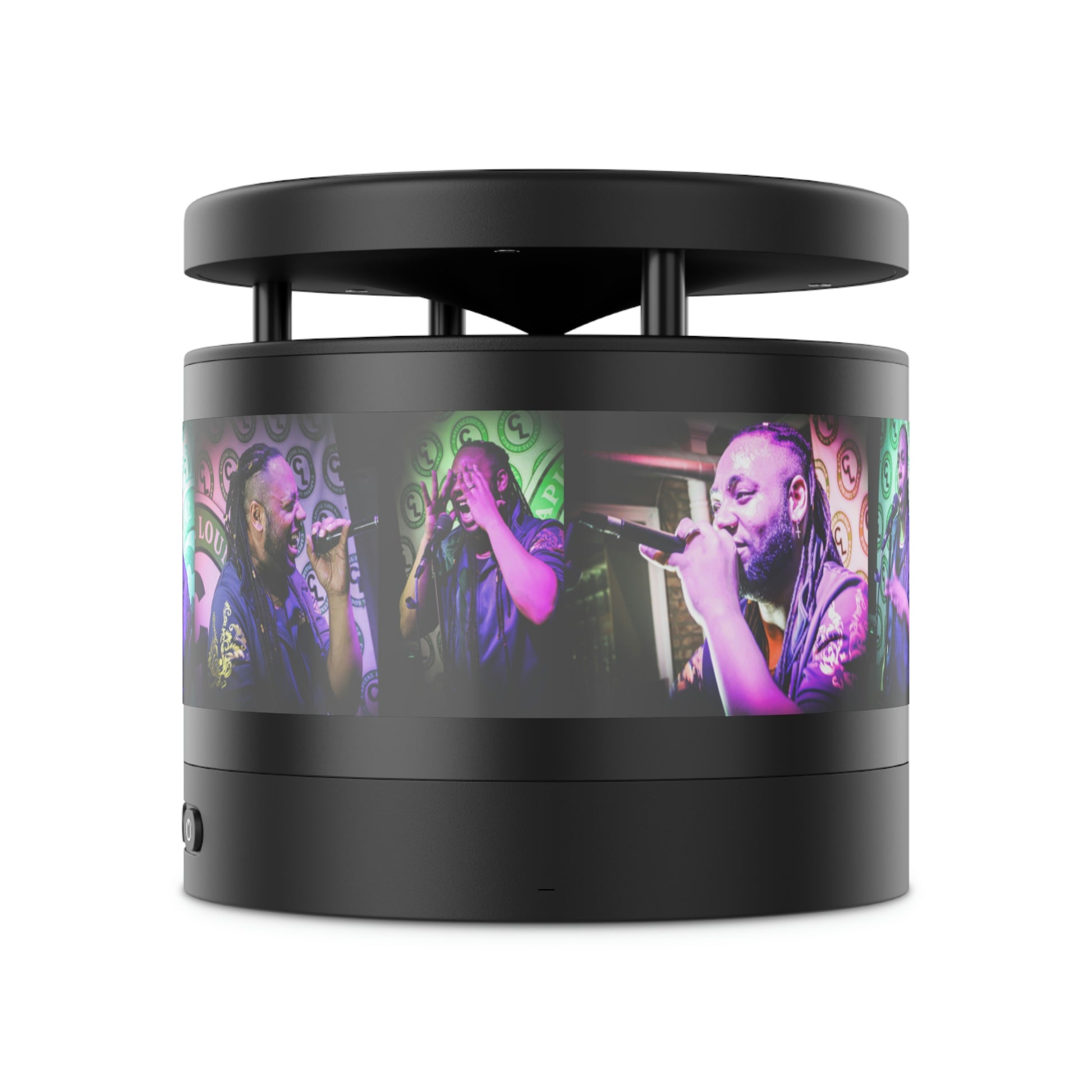 Equipped with Bluetooth version 4.2, a 33ft connection range, and a 3W output, this Aluminum-bodied, personalized Bluetooth speaker delivers crystal clear sound anywhere you go. Connect any Android/ iOS phone (including iPhone X) and listen at max volumes for over 2 hours. The top part of the speaker is a smart wireless charging pad. Package includes: 2 in 1 USB charging cable & 3.5mm Aux cable.